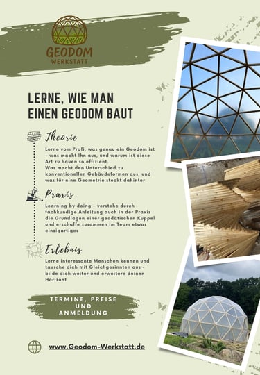 Die geodätische Kuppel ist eine der stabilsten und effizientesten Bauformen der Natur. Durch ihre kugelähnliche Struktur verteilt sich statische Last optimal auf das gesamte Gerüst, wodurch sie extrem widerstandsfähig gegen Wind, Schnee und Erdbeben ist – bei gleichzeitig minimalem Materialeinsatz. Das Verhältnis von Oberfläche zu Volumen ist optimal: Mehr Innenraum bei weniger Außenfläche bedeutet bessere Energieeffizienz, geringere Heizkosten und ein ausgewogenes Raumklima. Ihre Form wirkt zudem unterstützend auf das akustische und energetische Verhalten im Inneren – ideal für kreative, soziale oder meditative Räume.
